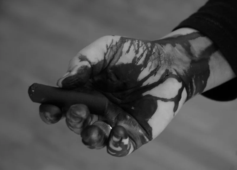 LG : Avant d’être tenu, il est choisi. La main est une petite pince assez molle reliée au corps, c’est elle qui tient le crayon. La main corrige l’œil, elle le barre et le répare. Graphite ou couleur. Mais le noir est une couleur. Le crayon n’est pas la plume. Il glisse sans pouvoir griffer. Ne gratte pas. On peut sucer le crayon, mordre un peu le bois, mouiller la mine quand elle est en couleur. Mais le crayon est un mot pour dessiner, une sorte d’outil général. L’important serait de penser cet outil, cet objet qui prolonge la main. On peut aussi rêver les doigts comme outil. Peindre ou dessiner avec les doigts (vieux rêve enfantin).